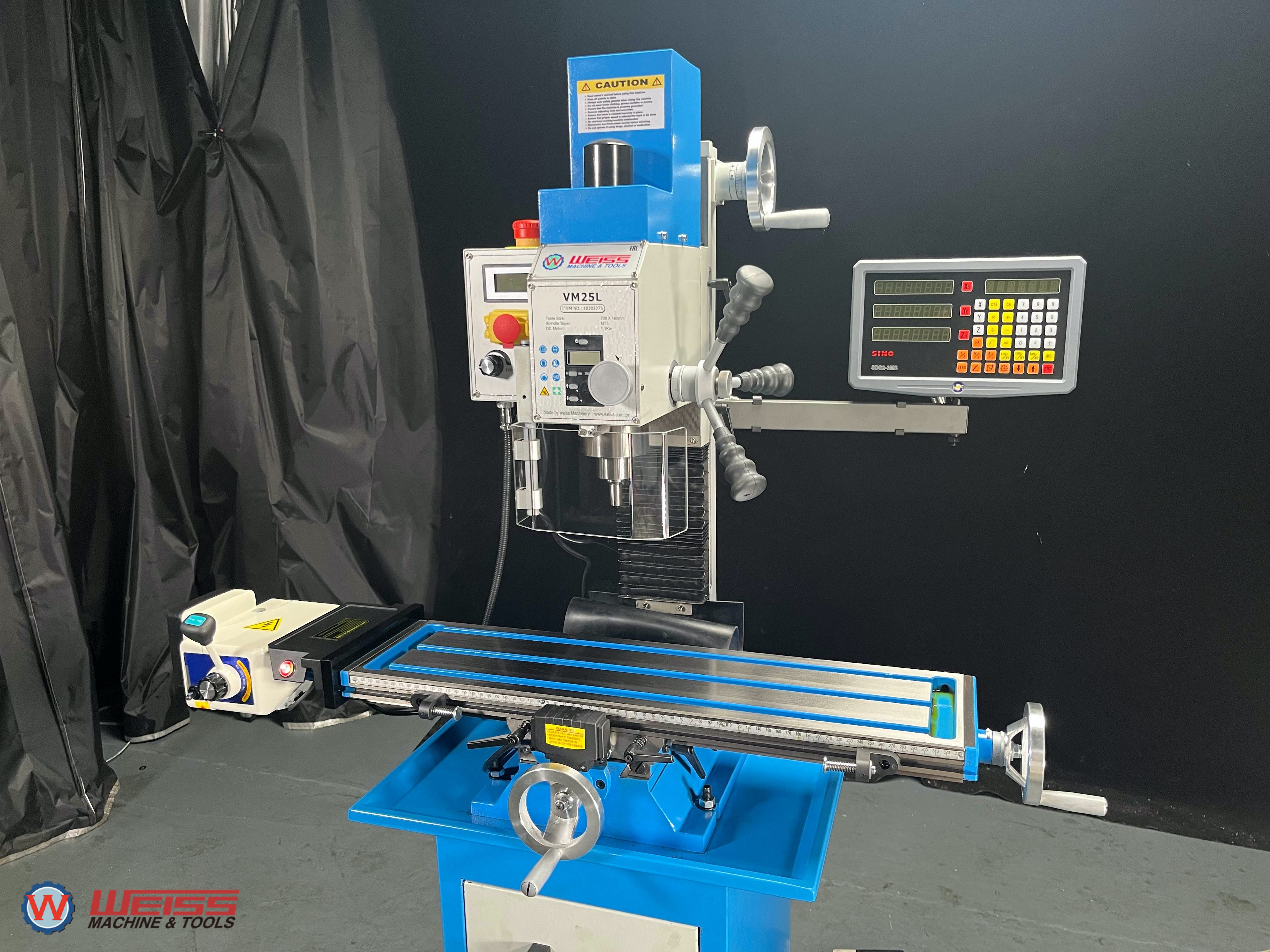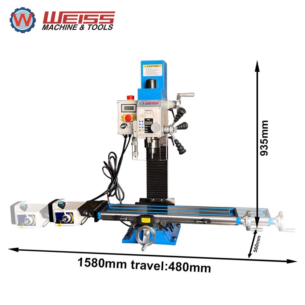 - сверлильно-фрезерный станок WEISS VM25L 3-го поколения с ременным приводом для домашней мастерской и небольших ремонтных мастерских, для малого бизнеса и малых предприятий, для производства единичных изделий в непроизводственных условиях;