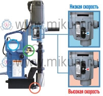 - Двухступенчатая трансмиссия позволяет переключать cкорость вращения сверла с 350 мин-1 на 650 мин-1