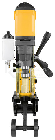 Компактный станок, предназначенный для работ в железнодорожном строительстве. Позволяет выполнять отверстия корончатыми сверлами диаметром до 45 мм. Станок легко закрепляется на рельсах с помощью системы быстрого зажима.