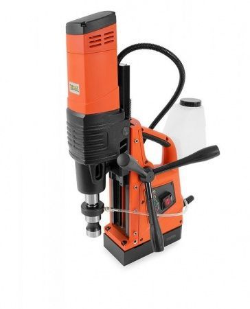 Устройство работает кольцевыми и спиральными сверлами. Модель оснащена бочком для СОЖ, что позволяет качественно выполнять работу и продлить срок службы оснастки. Тип допустимых хвостовиков - One-touch и Weldon-19. Станок работает в двух режимах: 1 скорость - 250 об/мин, 2 скорость - 450 об/мин.