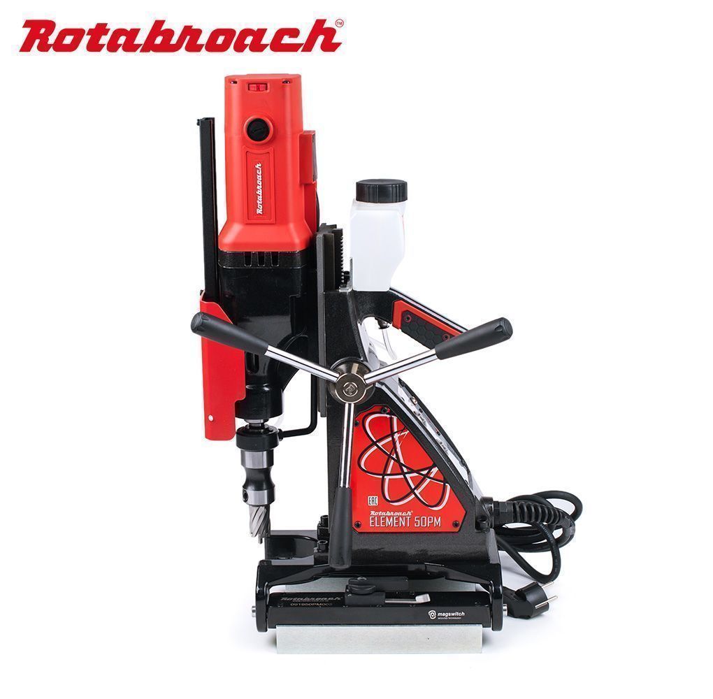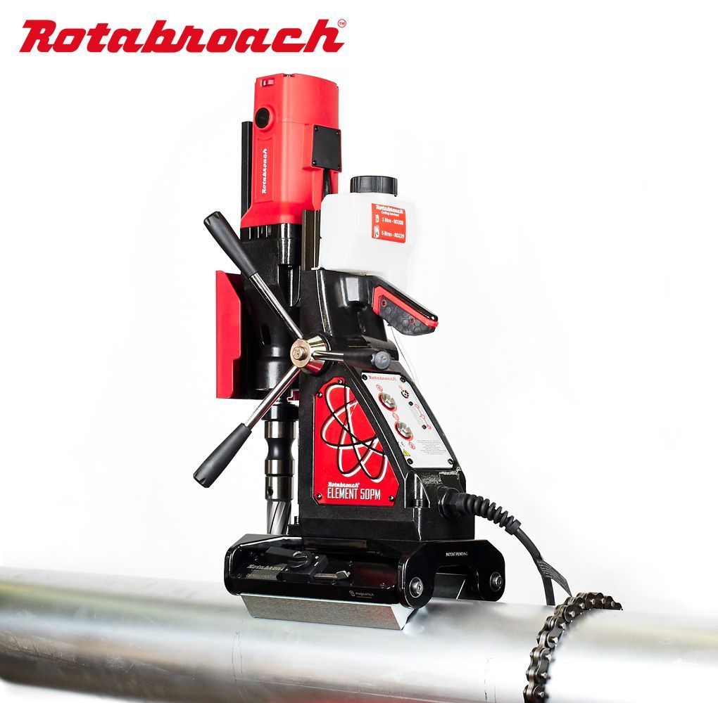 Магнитный сверлильный станок Element 50 PM для сверления труб, с основанием на постоянных магнитах.
