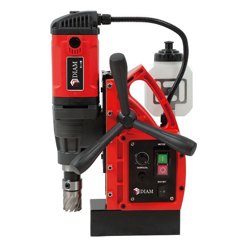 Магнитный сверлильный станок Diam EX-35E - профессиональное оборудование, которое применяется при работе на производствах в цехах, мастерских, строительных объектах. Станок предусмотрен для сверления глухих и сквозных отверстий в различных металлических материалах с помощью корончатых и спиральных сверел. Магнитный сверлильный станок представляет собой электродвигатель с заданной мощностью и числом оборотов. На корпусе имеется ручка плавной регулировки переключения скорости вращения. Шпиндельный узел имеет держатель для сверел WELDON 19. Транспортировочная ручка, расположенная на стойке обеспечивает легкое перемещение сверлильной машины. Станки снабжены предохранителями. Встроенная система охлаждения при работе подает СОЖ в автоматическом режиме. Большой рабочий ход станка позволит с легкостью менять корончатые сверла и упростит центрирование отверстия.