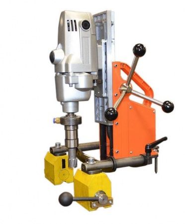 магнитный сверлильный станок, который позволяет сверлить трубы диаметром от 38 мм без использования каких-либо дополнительных адаптеров. Вообще, в мировой практике известны модели магнитных станков, которые могут быть установлены как на плоскости, так и на трубы среднего диаметра (Средним будем считать тот, который примерно равен ширине обычного электромагнитного основания станка, то есть 75-100 мм) .