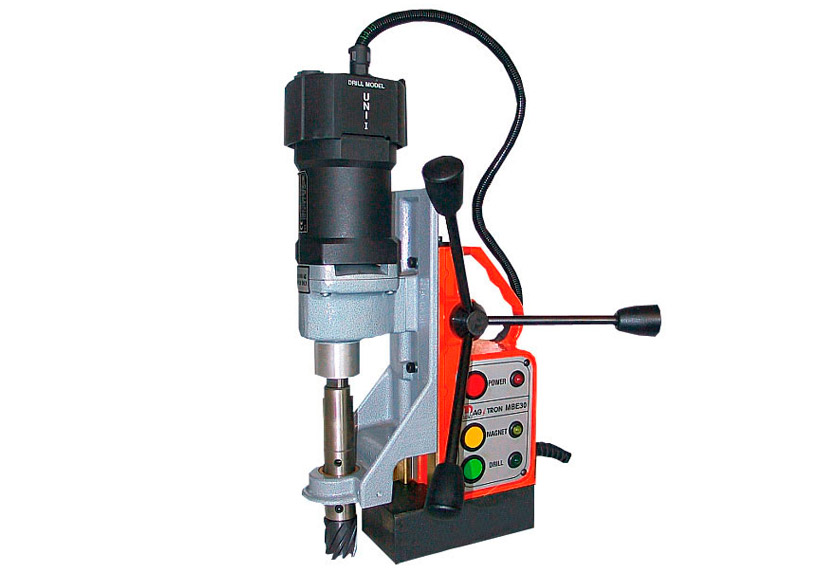 Магнитный сверлильный станок MBE 30 является более мощной модификацией ранее хорошо зарекомендовавшей себя модели MB 30. Увеличение мощности и производительности этой модификации сверлильного станка достигнуто за счет использования более мощного электродвигателя германского производства, который имеет бесступенчатый регулятор оборотов и блокировку при перегрузке.