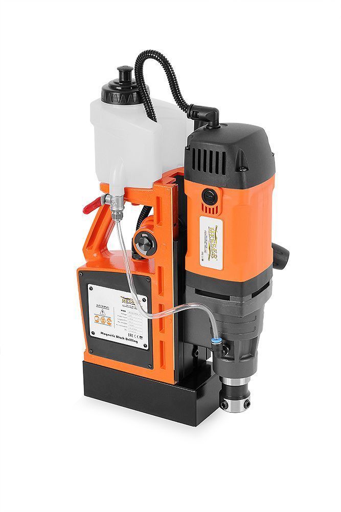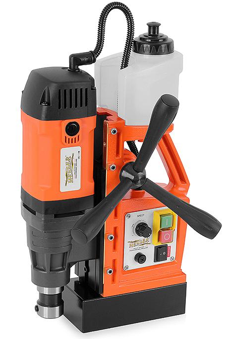 Возможность выполнения точных и качественных, не требующих дополнительной обработки отверстий диаметром до 50 мм в металле максимальной толщины 40 мм. обеспечивается за счет применения кольцевых сверл из быстрорежущей инструментальной стали (HSS) или сверл с твердосплавными напайками (ТСТ). Для качественного сверления и сохранения ресурса кольцевых сверл, в сверлильном станке MESSER MDM-42 предусмотрена регулируемая подача смазочно-охлаждающей жидкости (СОЖ) в зону сверления. Надежную фиксацию и точность засверливания обеспечивают электромагниты, находящиеся в магнитном основании станка и позволяющие проводить сверлильные работы под разными углами.