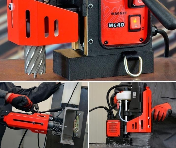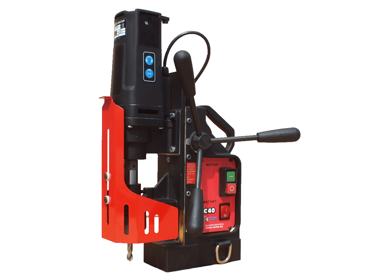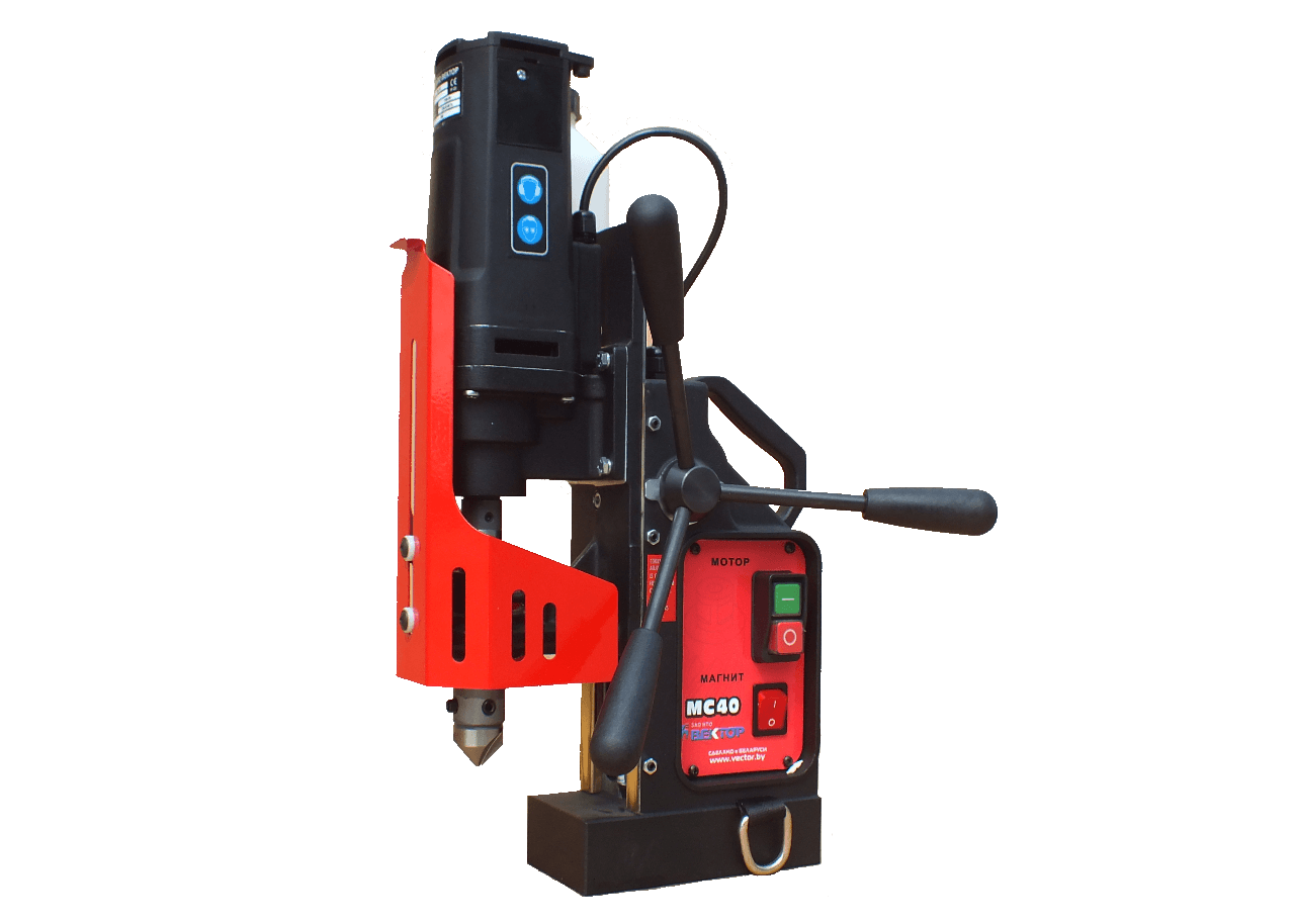 Магнитный сверлильный станок МС-40 - сверлильный станок на магнитной подушке, который сверлит отверстия до 40 мм корончатым сверлом и до 13 мм спиральным сверлом.