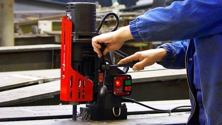 - после выполнения отверстия необходимо вывести инструмент из материала, выключить привод и электромагнитное основание;