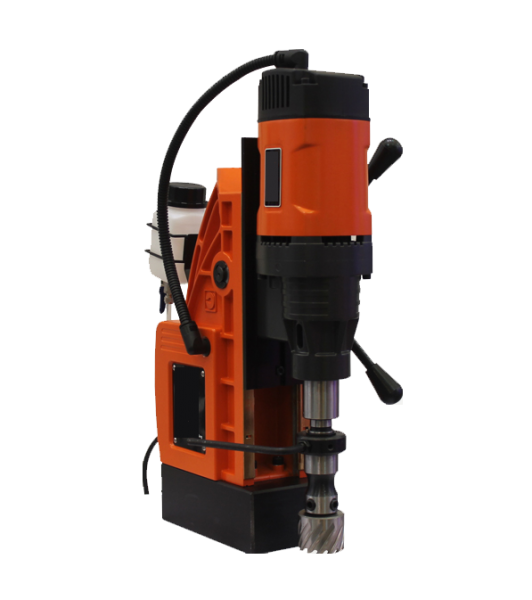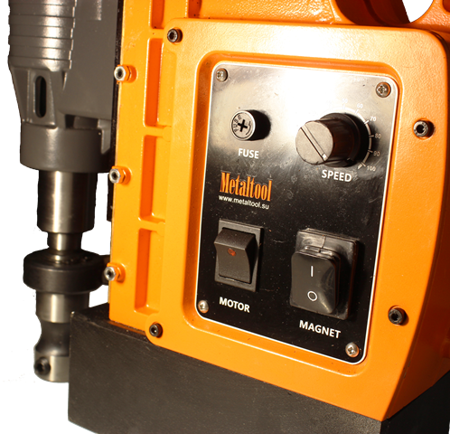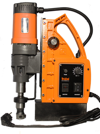 Магнитно-сверлильный станок Metaltool MT 98, двухскоростной, с мощностью двигателя 2180 Вт предназначен для средних сверлильных работ корончатыми или обычными сверлами в условиях строительных площадок и стационарного производства. Станок закрепляется на металлическую конструкцию с помощью электромагнита. Сверление производится специальным полым (корончатым) сверлом, которое требует значительно меньших усилий, затрат энергии по сравнению со спиральным сверлом.