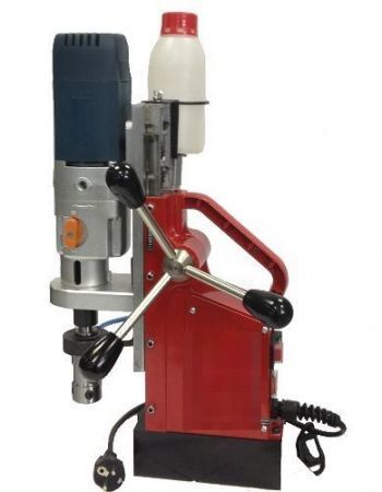СМ 38Э - бюджетный станок на магнитном основании для корончатого сверления отверстий в металле диаметром до 38 мм при максимальной толщине листа 60 мм; Специальные скользящие направляющие, изготовленные из особого низкофрикционного материала, не требуют столь частой регулировки; Рукоятка подачи сверла переставляется на любую сторону, что необходимо для левшей и при использовании станков в стесненных условиях; Мощность и крутящий момент односкоростного двигателя достаточны, чтобы за 25 секунд просверливать 10 мм стальной лист корончатым сверлом диаметром 27 мм.