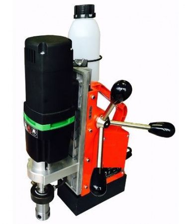 Двухскоростная коробка передач. Посадочный Конус Морзе 2. Легкая станина, отлитая под давлением из алюминиевого сплава. Гравитационная система подачи СОЖ через держатель сверла прямо к режущим кромкам. Гнездо для крепления ключа замены корончатого сверла. новый мощный электромагнит с дополнительной защитой катушек от воздействия СОЖ. Симметричное расположение органов управления и переставляемая на любую сторону рукоятка подачи для удобства работы с любой стороны. Симметричные органы управления одинаково доступны как при правом, так и левом положении рукояток подачи. Герметичный пластиковый чемодан (IP 67) повышенной ударопрочности.