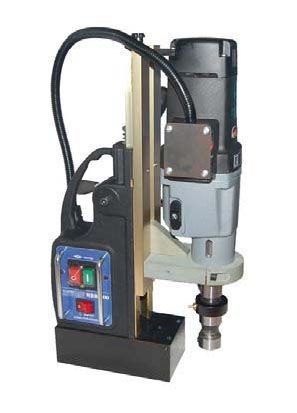 СМР 100 - модификация сверлильного станка на магнитном основании с реверсом и электронной бесступенчатой регулировкой оборотов в двух диапазонах, которая применяется для развертывания отверстий и нарезания резьбы до М24; Переключение направления вращения вала электропривода позволяет нарезать резьбу без использования дорогостоящих и капризных реверсных муфт; Электронный ограничитель вращающего момента предохраняет метчик от поломки в глухом отверстии и позволяет отказаться от резьбонарезного патрона с трещёткой; Электромагнит с увеличенной прижимной силой и специальной маслостойкой защитой катушек; Стандартный держатель: Weldon 19.