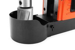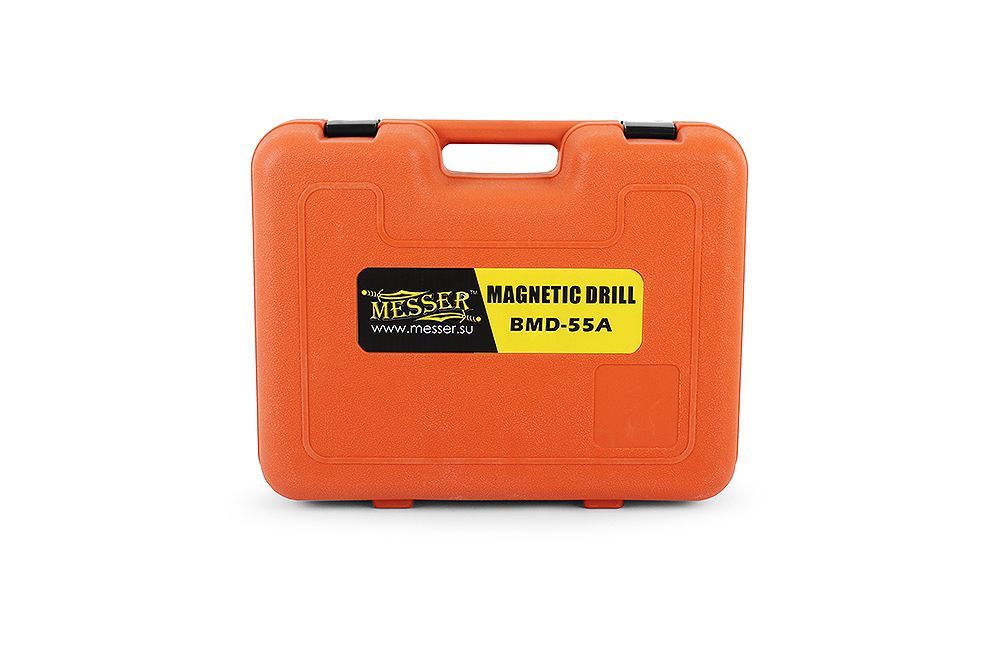 Сверлильный станок на магнитной основе MESSER BMD-55A поставляется в удобном для хранения и транспортировки пластиковом кейсе, в комплекте с бачком для СОЖ, тремя съемными рукоятками подачи сверла, страховочным тросом, 3-х кулачковым патроном с ключом и адаптером, защитным кожухом и двумя шестигранными ключами.