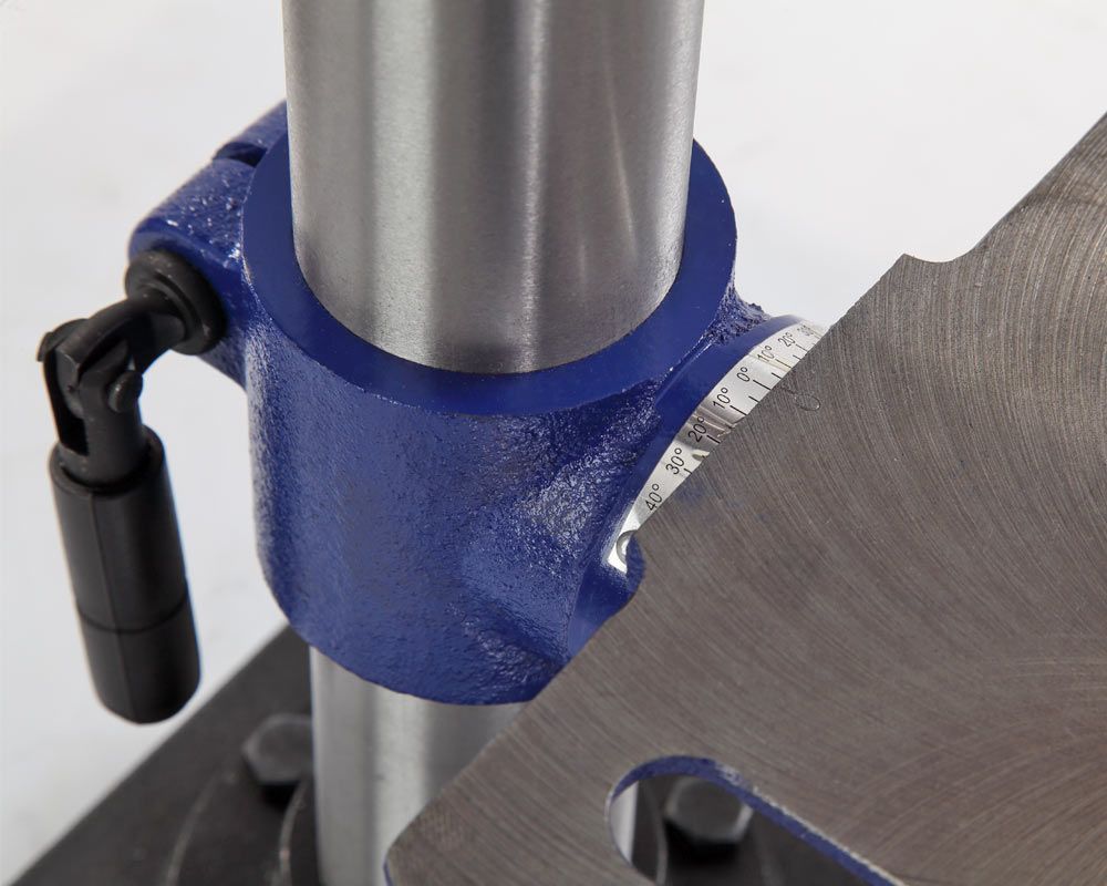 Патрон ключевой с максимальным зажимаемым диаметром хвостовика инструмента 13 мм. Диаметр стойки (колонны) 48 мм. На ней фиксируется стол с помощью зажима.