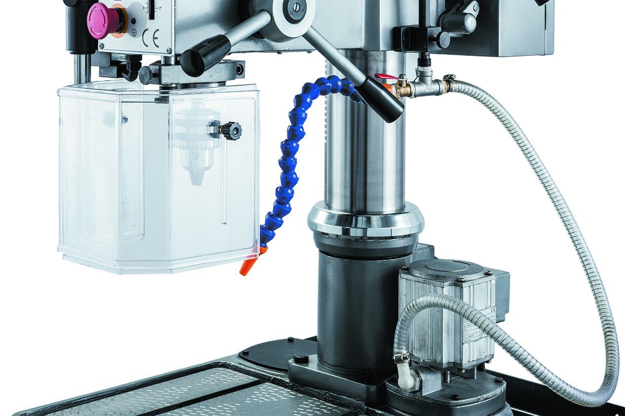 Станок имеет массивное чугунное основание, оно же является столом и, оно же является баком для СОЖ, система подачи СОЖ в зону резания входит в стандартную комплектацию. На массивную толстостенную колонну установлена сверлильная голова, отлитая из серого чугуна. Голова перемещается по колоне, а также вращается на 360 градусов. Шестерни станка смазываются консистентной смазкой, остальные точки смазки указаны в инструкции по эксплуатации. Станок имеет гарантию 2 года и поставляется готовый к работе с патроном, дорном, 2-мя переходниками, клином и ключами для обслуживания станка.