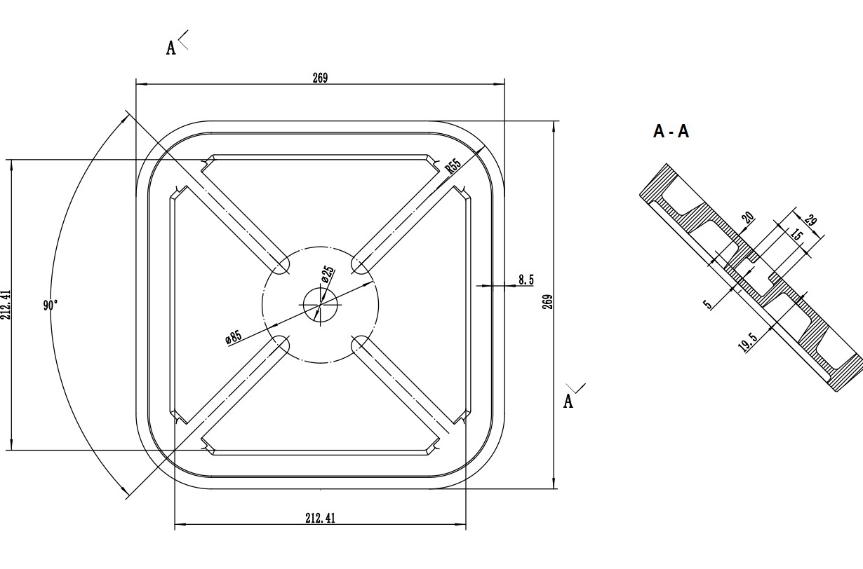На основание установлена колонна диаметром 73мм с зубчатой рейкой для возможности перемещения стола по вертикали. Рабочий стол, как и основание, изготовлен из качественного чугуна, его размер 270х270мм с 4-мя Т-образными пазами, расположенными крест-накрест, ширина пазов 15мм. Максимальное расстояние между шпинделем и основанием составляет 690мм, а расстояние между шпинделем и рабочим столом – 465мм.