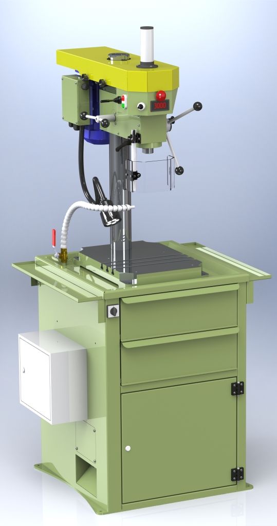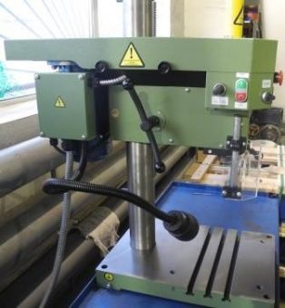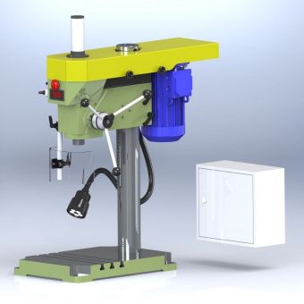 Вертикально-сверлильный станок используется для оснащения серийных, мелкосерийных и единичных производств. Станок данной модели предназначен преимущественно для обработки деталей из конструкционных материалов быстрорежущими и твердосплавными инструментами. Вертикально-сверлильный станок, может эффективно использоваться не только для сверления отверстий, но и для выполнения целого перечня других технологических операций: рассверливания и растачивания отверстий; развертывания; зенкерования; нарезания внутренней резьбы; подрезки торцов. На станке установлен частотный преобразователь, который позволяет плавно регулировать обороты шпинделя в широком диапазона. Передача крутящего момента от электродвигателя к шпинделю станка осуществляется ременной передачей. На станке установлен информационный дисплей для отображения фактической чистоты вращения шпинделя.