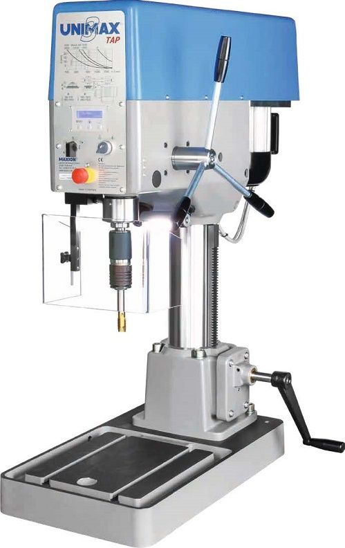 Мощный и точный вертикально-сверлильный станок на колонне с большим рабочим диапазоном, стол сверлильного станка регулируется при помощи механизма реечной передачи, вращается вокруг колонны. Переключатель реверса для нарезки резьбы. Кнопка аварийного останова.