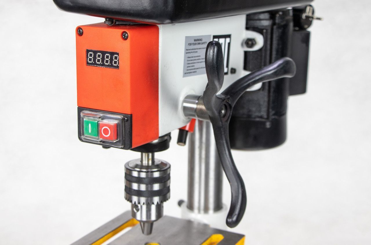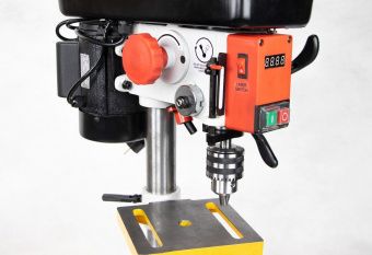 Сверлильный станок на стойке В-1313В/230 предназначен для сверления отверстий в металле, пластике, дереве и других материалах. В условиях мелкого и среднесерийного производства настольный сверлильный станок находит широкое применение за счет своей многофункциональности и высокой производительности. Данное оборудование может быть использовано практически в любых условиях — оно работает от обычной бытовой сети, имеет небольшие размеры и отличается невысокой потребляемой мощностью. Возможности станка расширены благодаря функциям поворота и наклона стола. Привод вариаторного типа позволяет подбирать необходимую скорость вращения шпинделя с цифровой индикацией оборотов.