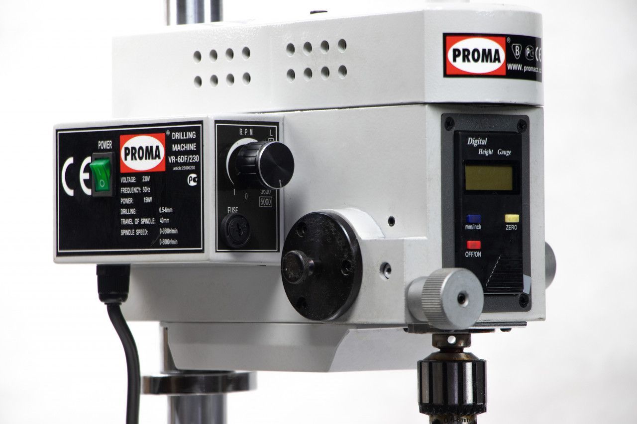 Кроме высокого качества и надежности станка VR-6DF, особенным преимуществом является цифровой индикатор, который помогает точно определить глубины сверления. Обороты шпинделя имеют плавную регулировку – это обеспечивает аккуратность и точность в проведении операции.