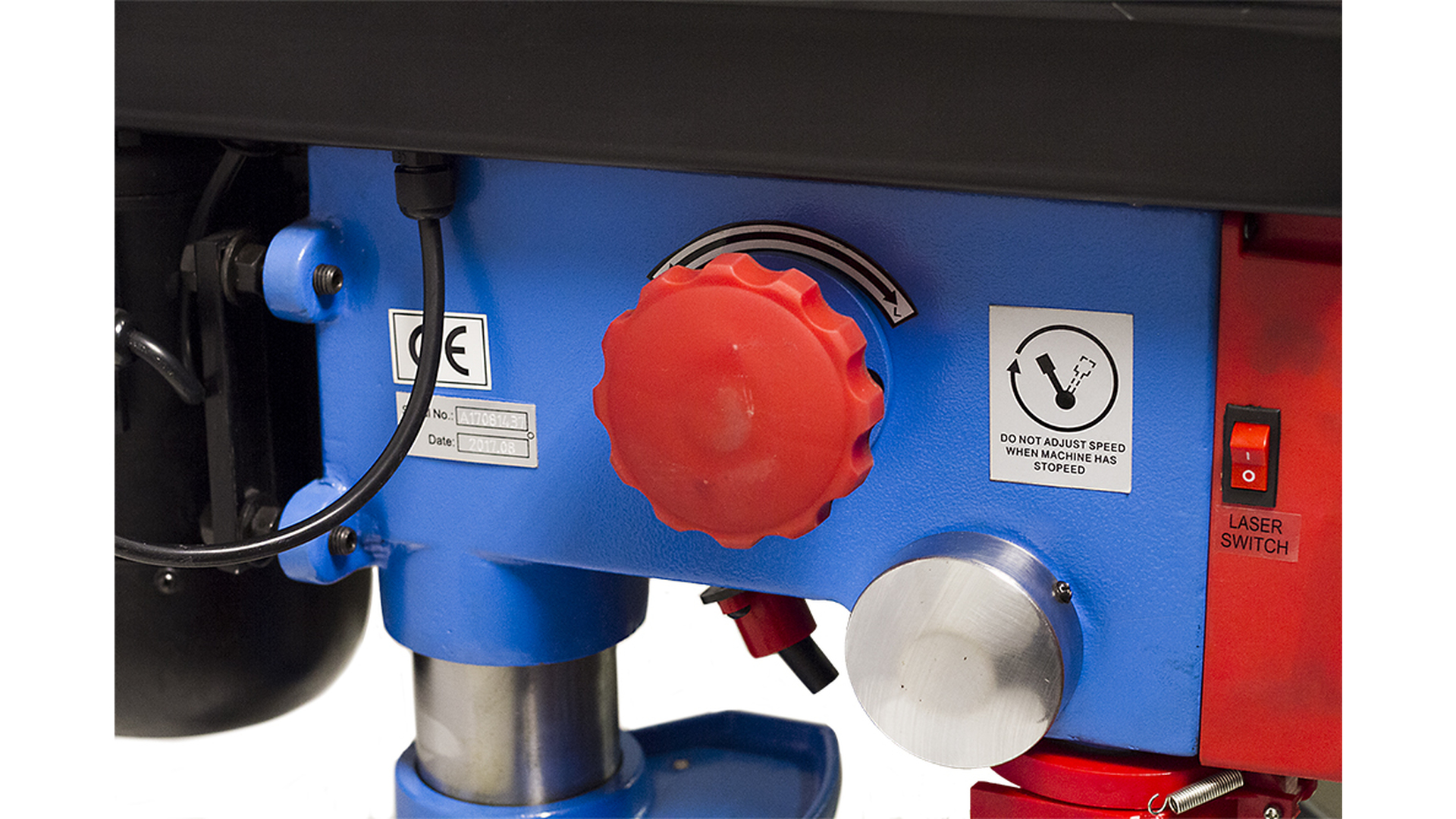 На станке WTZ-16J размещён поворотный рабочий стол, лазерный указатель сверления, передача вращения основана на ремённой передачи, система изменения скорости вариаторного типа, цифровой дисплей отображения скорости вращения.