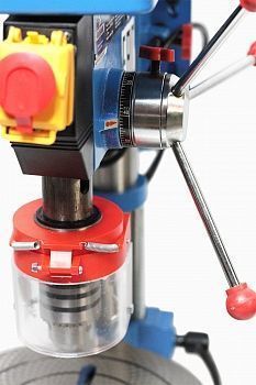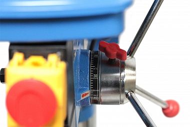 При диаметре 16 мм глубину сверления оператор может выбирать самостоятельно, плавно регулируя погружение большим рычагом опускающихся ручек.