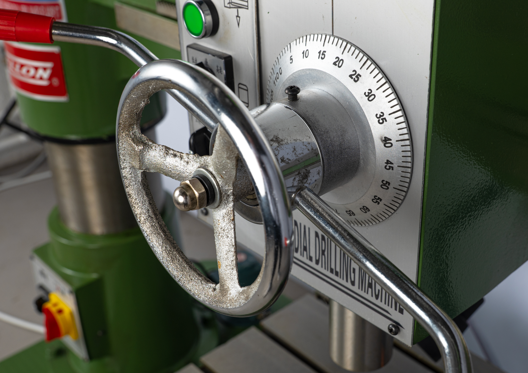 Шпиндель станка двигается вертикально и радиально — по кругу и от центра окружности к её краям. А направляющая рама может поворачиваться на 360 градусов. Получится обработать заготовку с разных сторон за одну проходку, что сокращает время обработки и увеличивает производительность.