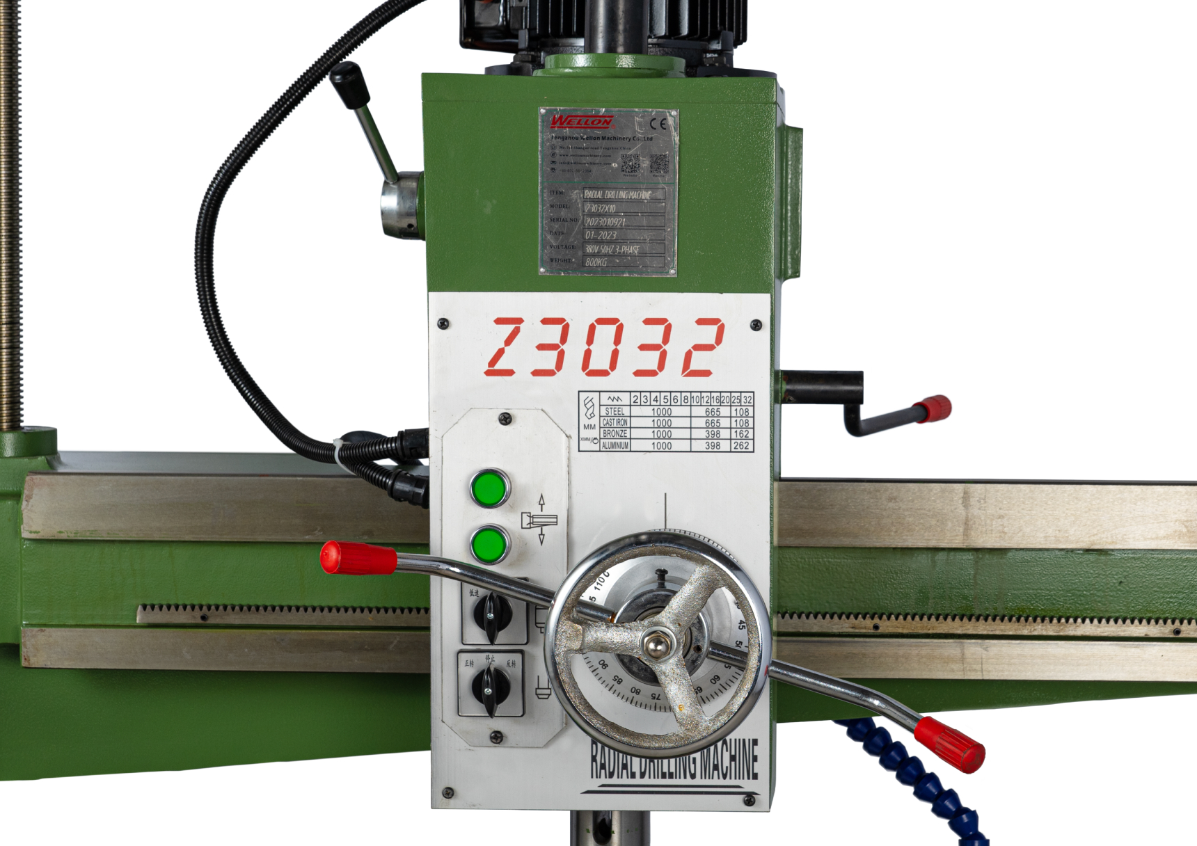 У шпинделя Z3032×10 шесть скоростей, можно подобрать нужную под конкретный металл или операцию. Частота вращения шпинделя варьируется от 108 до 1000 об/мин. Низкие скорости используют для развертывания, а высокие — для сверления тонких отверстий.