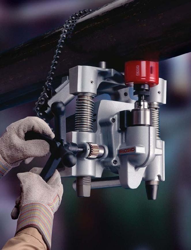 Станок HC300 для сверления отверстий диаметром до 76 мм в трубах из стали, нержавеющей стали, чугуна, латуни при помощи биметаллических коронок. Встроенный двигатель и понижающий редуктор сконструированы таким образом, чтобы уменьшать нагрузку с режущего инструмента, и таким образом, продлевать его срок эксплуатации. Компактные размеры позволяют работать в небольших пространствах, с трубами, расположенными близко к потолкам. Отверстия, производимые данными станками позволяют использовать таки фитинги как Mechanical T®, Vic-O-Let™, сварные седла Weld-O-Let™ и другие для разветвления трубопроводов не под давлением. Сверлильная машина HC300 будет одинаково удобна в использовании как на объекте, так и на производстве, мастерской или цеху.