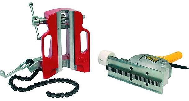 Станок состоит из станины с цепными тисками для крепления на трубе, и сверлильного механизма с регулятором заглубления. В комплект поставки входит станина, цепь со струбциной, держатель сверла с пластиной регулировки глубины сверления, а также чашечное свело. Станок применяется для работы с трубами от 1 1/4 до 10 дюймов (42- 273 мм). Диапазон допускаемых к использованию сверл - до 43/4 дюйма (120 мм). Работа допускается только с трубопроводами без давления. Сверла или резцы продаются отдельно.