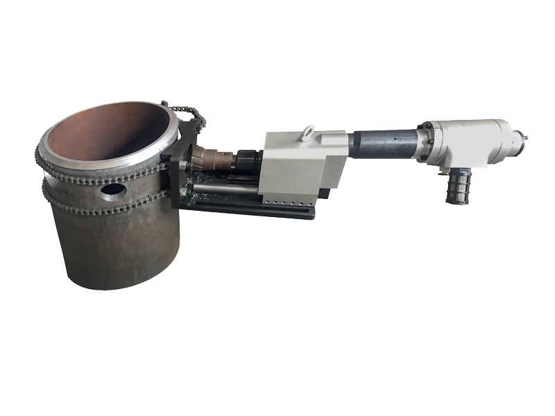 Станок для сверления отверстий в трубах (для перфорации труб). Натяжная цепь фиксируется на наружной поверхности трубы.