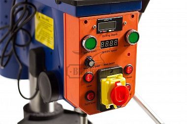 Скорость станка регулируется с помощью ручки, параметры отображаются на дисплее в центральной части. Скорость работы — до 2600 оборотов в минуту.
