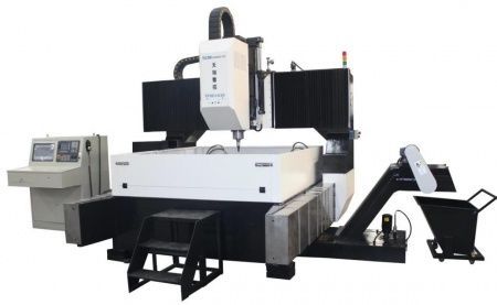 12 гидравлических зажимов и Т-образных пазов фиксируют заготовки и обеспечивающих простоту эксплуатации, экономию времени и повышение производительности. - Три ЧПУ-оси, отвечающие за направление перемещения рамы (ось х), перемещение сверлильной головки (ось Y) и направление подачи шпинделя (ось Z) оборудованы линейными направляющими и шарико-винтовыми парами, управление которыми производится высокоточным сервоприводом.