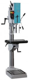 Сверлильные станки серии A3008 M с прочным поворачивающимся столом, изготовленным из отливки высококачественной стали. Рабочий стол имеет Т-образный паз и канал для стока СОЖ, установлен на прочный кронштейн, вращающийся на 360 градусов вокруг стойки станка. Подъем и опускание рабочего стола (для установки на удобную для оператора высоту) осуществляется рычагом. Сверлильная головка станков имеет возможность поворота на 360 градусов и может перемещаться в вертикальном направлении. Коробка передач сверлильного станка на косозубых цилиндрических зубчатых колесах, контактирующих со стальными и усиленными фторопластовыми шестернями. Станки могут под заказ оборудоваться системой подачи СОЖ. Модель А 3008 М может поставляться как в настольном, так и в напольном исполнении, с функцией автоподачи.