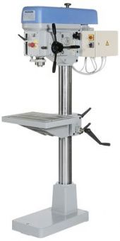 Мощный и точный промышленный вертикально-сверлильный станок. Электромагнитная муфта для выполнения подачи. Положения стола регулируется с помощью шестерни и зубчатой рейки, и стол может поворачиваться вокруг колонны. Станина без Т-образных прорезей. Защита электродвигателя.