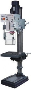 - Мощный вертикальный сверлильный станок с зубчатым приводом шпинделя, автоматической подачей пиноли и встроенным резьбонарезным устройством.