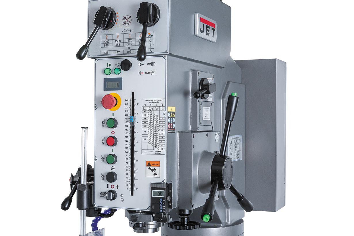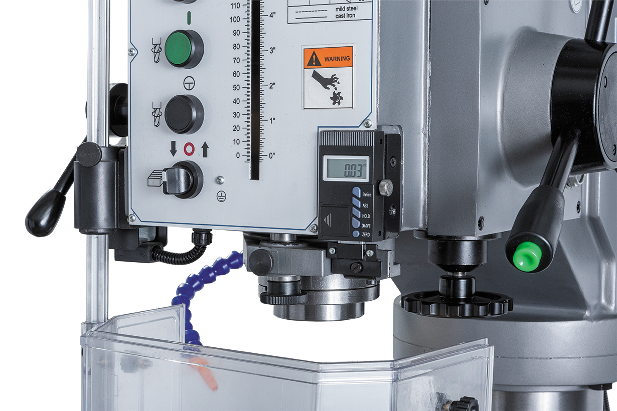 Модель GHD-55PFAL оснащена 4-х скоростной автоматической подачей пиноли шпинделя со скоростями 0,1/0,2/0,3/0,4 мм/об, которые позволяют обрабатывать различные виды отверстий на корректных режимах резания с использованием инструмента из быстрорежущих сталей и твердых сплавов.