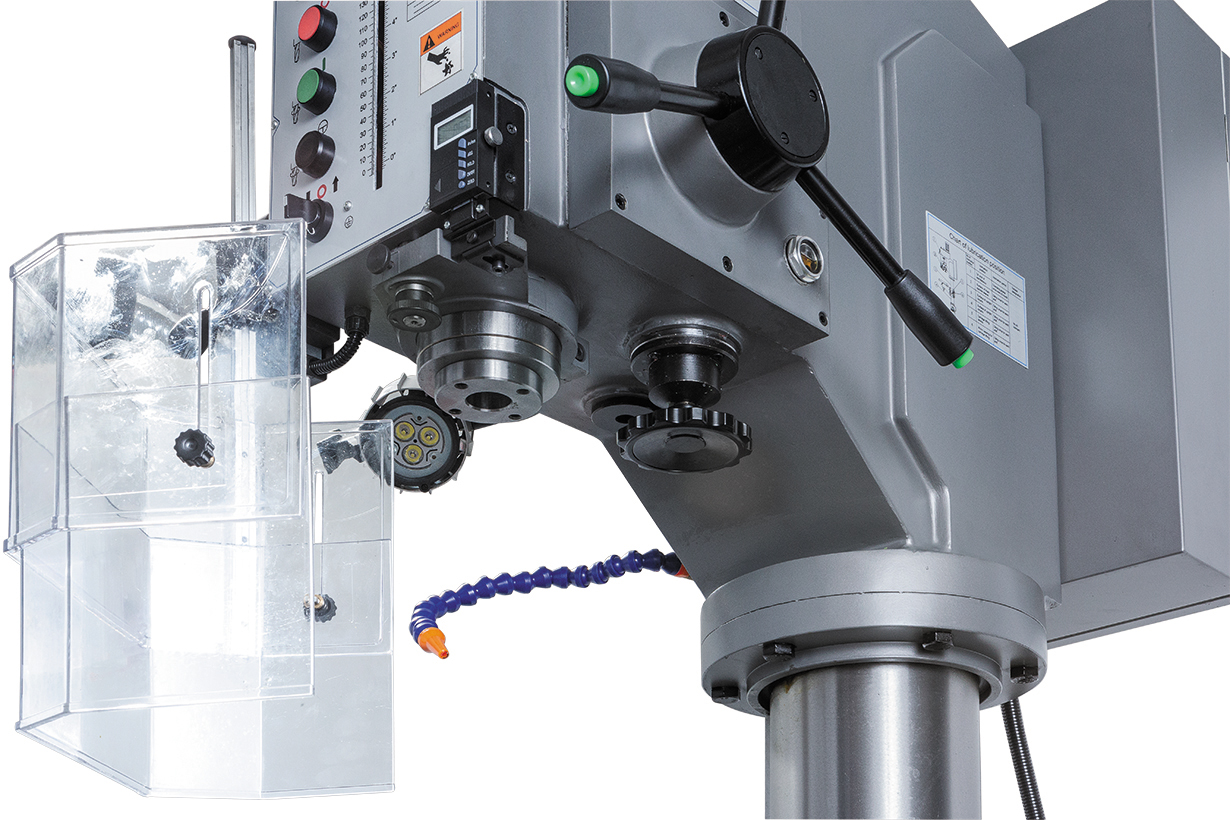 Мощный, надежный редукторный сверлильный станок для тяжелых работ с максимальным диаметром сверления до 50мм и диаметром нарезания резьбы до М30. Имеет функции автоматической подачи, режим резьбонарезания, возможность поворота рабочего стола и вращения во круг колонны, механизированного перемещения стола по вертикали и встроенной системы СОЖ.