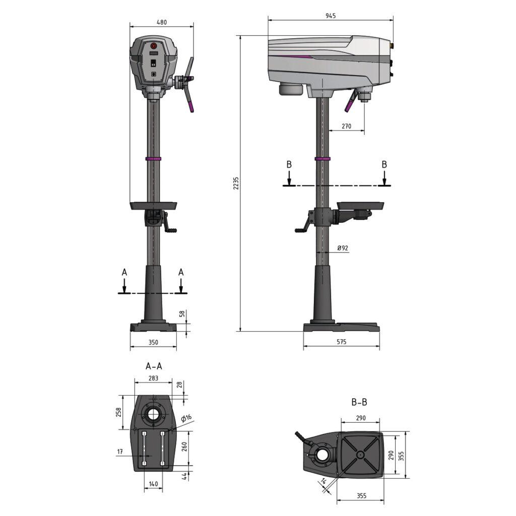 Вертикально-сверлильный станок – традиционный формат исполнения сверлильного оборудования промышленного применения. С его помощью выполняются глухие или сквозные отверстия, производится рассверливание, расточка, зенкование отверстий и нарезка резьб на заготовках малого и среднего размера - узлах, деталях, металлическом профиле, листовом материале и т.д.