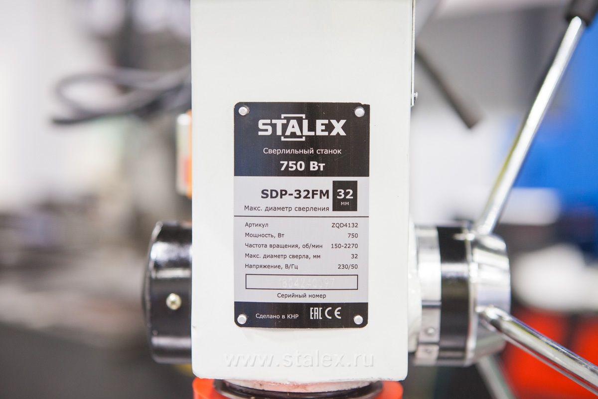 Вертикально-сверлильный станок STALEX SDP-32FM предназначен для сверления в черных и цветных металлах, а также полимерных материалах, поддающихся обработке резанием.
