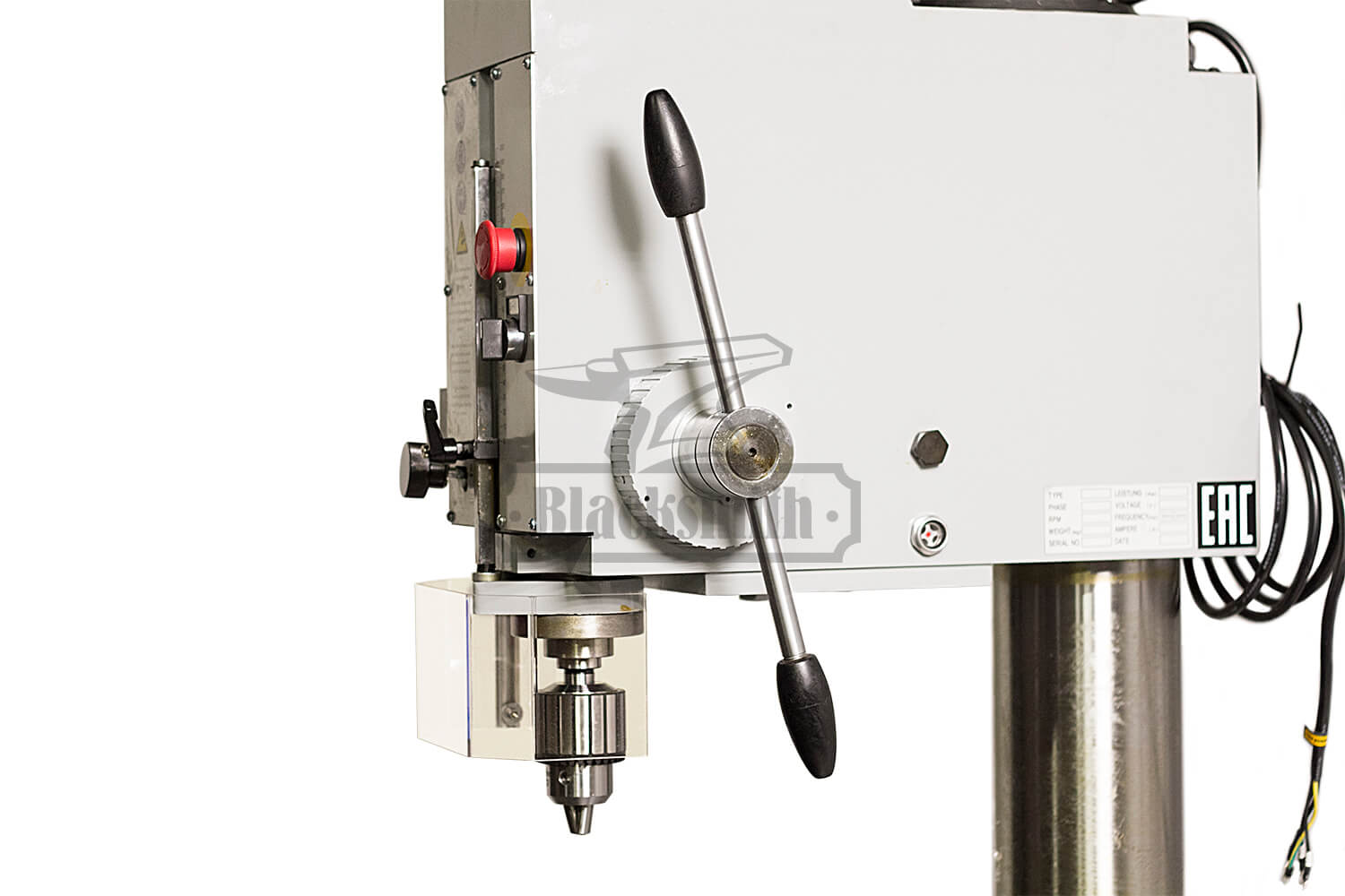 Переключают скорости на панели управления, а передача происходит происходит с помощью поворота ручек на сверлильной головке. Скорость автоподачи 0.10-0.16-0.24-0.33 мм / об.