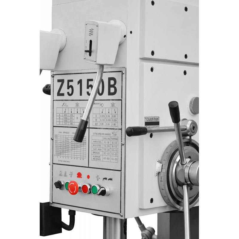 На станке Z 5150 A установлен длинный шпиндель, а на Z 5150 B - короткий. И как производная от этого максимальное расстояние от шпинделя до стола увеличивается с 750 мм до 830мм. На станке предусмотрена функция автоматического сверления глубоких отверстий со ступенчатой подачей и регулировкой глубины сверления. Максимальное усилие подачи 16 000N , максимально допустимый крутящий момент шпинделя 350Nm. Рекомендации по применению Сверлильный станок Z 5150 A выполняет широкий спектр различных операций: зенкерование, сверление, растачивание, зенкерование, нарезание резьбы.