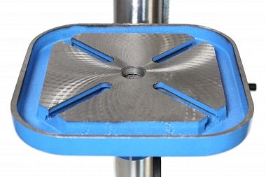 Оператору доступна работа со сверлами различного диаметра – до 25 мм включительно, 12 скоростей и плавное изменение глубины. Отверстия могут быть цилиндрической или конусообразной формы. Размер опорной плиты ограничен 290х290 мм.