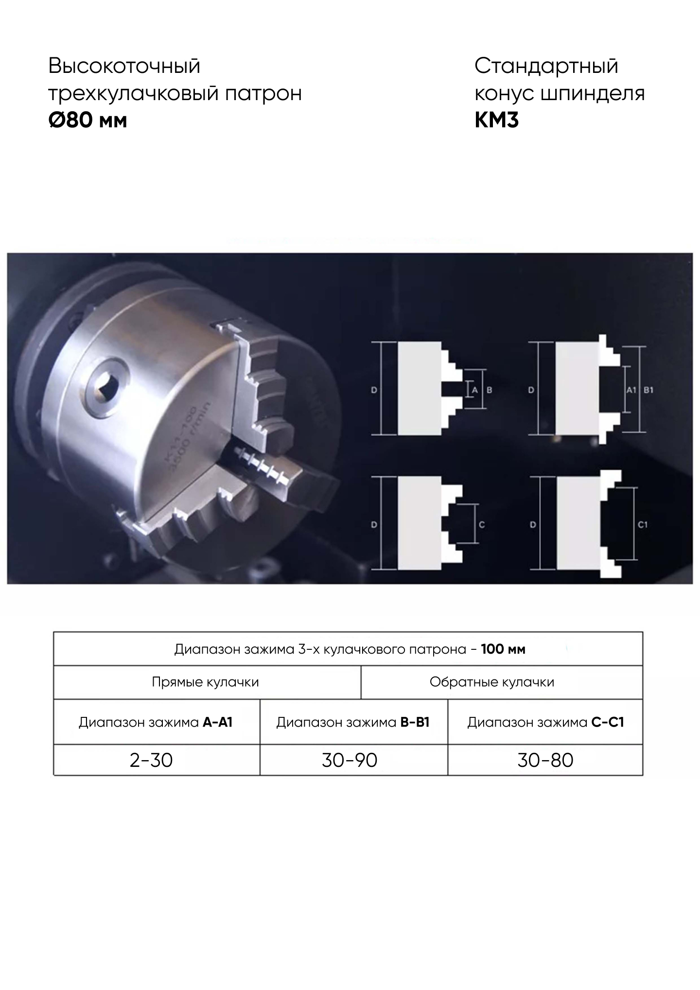 Подходит для обработки деталей типа тел вращения из стали, титана, алюминия, меди и других цветных металлов, а также дерева