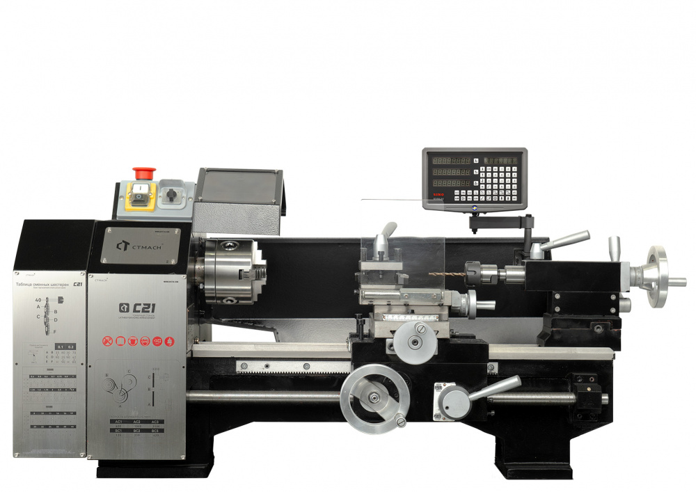 Станку не нужна отдельная линия электропитания, покупать стабилизатор напряжения тоже не придется. C21 подключается к любой розетке с напряжением 220 В, например, в квартире. Также станок оснащен устройством цифровой индикации (УЦИ). В целях безопасности установлена защита от случайного включения или запуска. -
