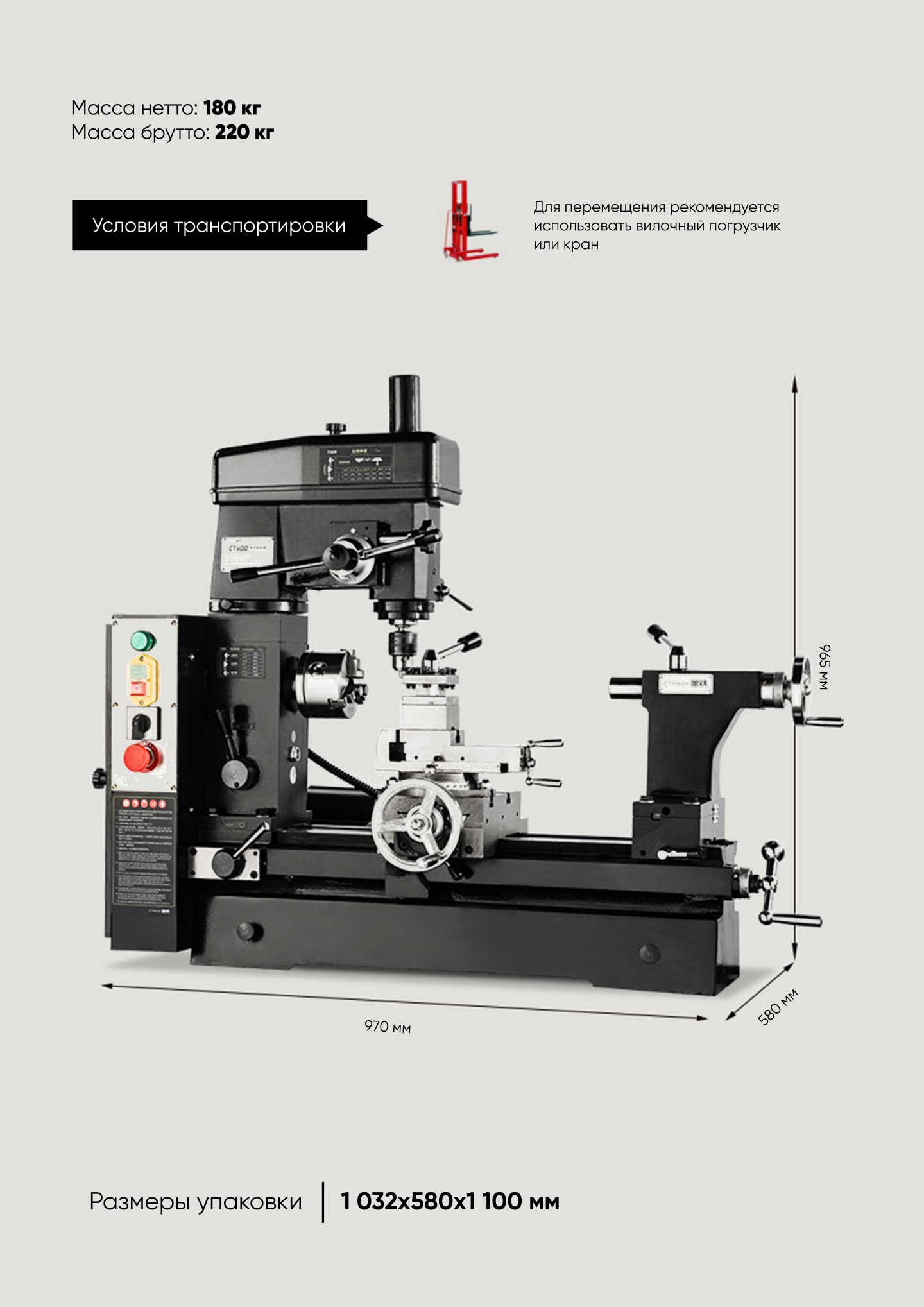 Состоит из станины, передней и задней бабки, сверлильно-фрезерной головки, рабочего стола, поворотного суппорта и двигателя. Он объединяет в себе функции токарной обработки и сверлильно-фрезерной в одной компактной конструкции. Имеет высокую производительность, удобен в управлении и имеет множество функций. Сверлильно-фрезерная головка имеет поворотную конструкцию, выполняет функцию сверления и фрезерования, а также может подниматься и опускаться.