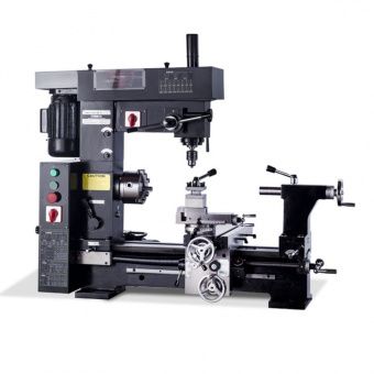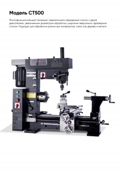 Многофункциональный токарный, сверлильный и фрезерный станок с двумя двигателями, увеличенным диаметром обработки, широким сверлильно-фрезерным столом. Подходит для обработки различных материалов, таких как дерево и металл.