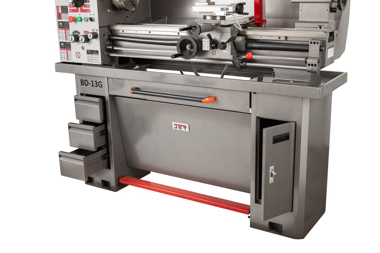 JET BD-13G - универсальный токарно-винторезный станок, предназначенный для работы с черными металлами и цветными сплавами, а также для нарезания метрических и дюймовых резьб. Станок предназначен для профессиональных мастерских, автосервисов, предприятий малого и среднего бизнеса, а также для домашних мастеров, мобильных ремонтных бригад и учебных заведений. Токарный станок модели BD-13G является самым большим и оснащенным из бытовой серии станков JET.