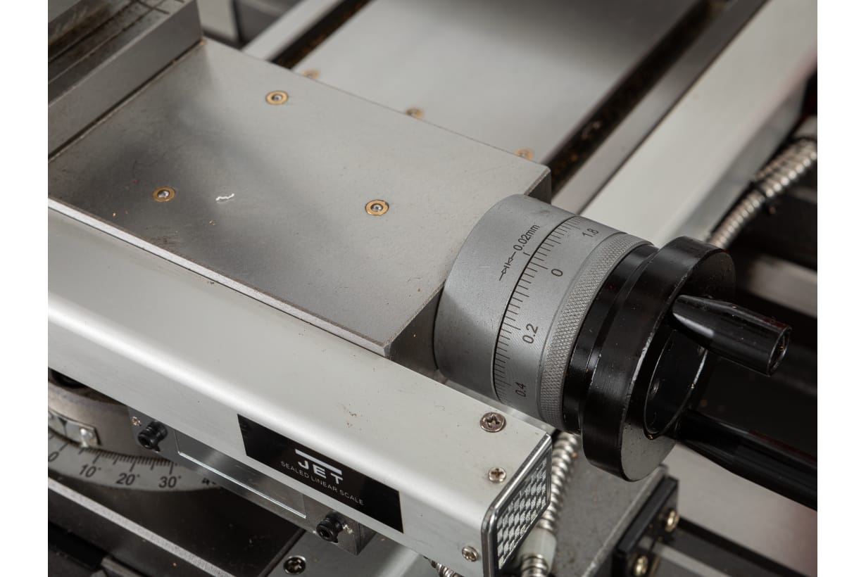 JET BD-13G имеет 15 типов продольных и поперечных подач в автоматическом режиме, а также позволяет нарезать 18-ть видов метрических и 13-ть видов дюймовых резьб. Для удобства нарезания длинных резьб, станок укомплектован резьбоуказателем. На станке предусмотрена возможность нарезания правой и левой резьбы
