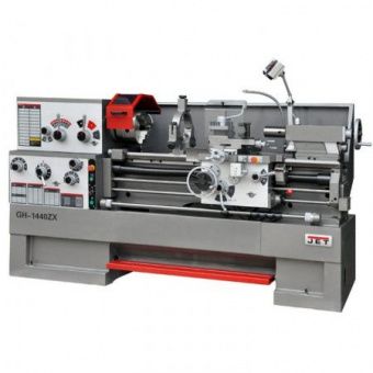 GH-1440ZX позволяет обрабатывать детали диаметром до 360 мм над станиной и до 600 мм при снятом мостике gap (с ограничением по длине в 305 мм). Диаметр обточки над поперечным суппортом - 200 мм. Расстояние между центрами у данной модели оптимально подобрано для оборудования данного класса и составляет 1000 мм. Однако это не является пределом: в шпинделе станка предусмотрено проходное отверстие диаметром 80 мм. Коробка подач GH-1440ZX имеет множество предустановленных режимов, что позволяет нарезать все типы модульных, метрических, дюймовых и питьевых резьб. Станок установлен на массивную станину, выполненную из высококачественного чугуна. Это обеспечивает эффективный отвод тепла от инструмента и позволяет свести к минимуму возможные вибрации. Направляющие станины проходят закалку токами высокой частоты, затем шлифуют и обрабатываются особым антифрикционным составом. Такой подход позволяет добиться более высокой точности обработки и повышает ресурс станка в целом. Станок оснащен мощным асинхронным электродвигателем на 5,5 кВт и напряжением питания 400 В. Для облегчения переключения режимов работы и расцепки шестерен предусмотрен толчковый, или как его также называют, импульсный пуск двигателя.