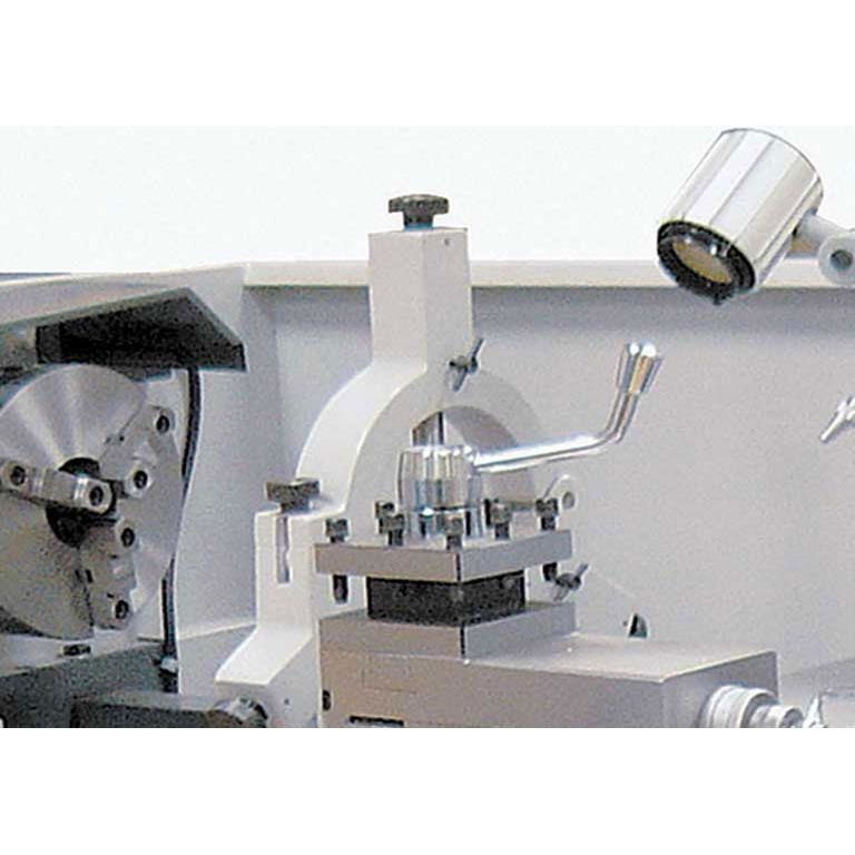 Коробка подач полностью автоматическая и позволяет нарезать все основные типы резьб без смены шестерен: метрические дюймовые, модульные и питчивые. GH-1640 ZX DRO может использовать широкий ассортимент резцов различного назначения, резцедержатель рассчитан на оснастку до 25x25 мм по сечению ее хвостовика. Станок поставляется с цифровыми линейками УЦИ (индекс «DRO») по трем осевым направлениям, что облегчает работу оператора, повышает точность обработки, экономит время и снижает риск возможного брака. GH-1640 ZX DRO оборудован регулируемой муфтой ходового винта и толчковым режимом пуска шпинделя для облегчения смены режимов работы.